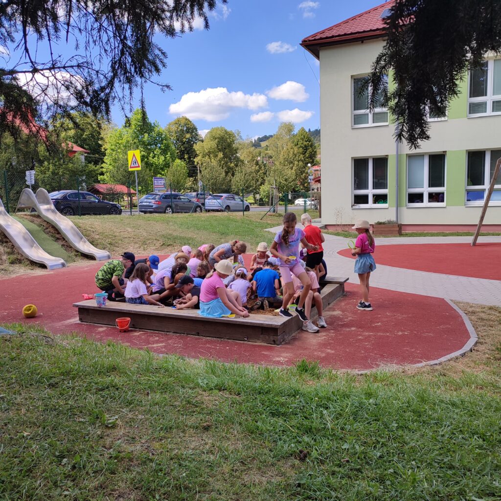 Nechybělo ani hraní si na PONY EXPRES, kdy naši malí trapeři putovali přírodou a měli za úkol bezpečně doručit zásilku. Tou drahocennou surovinou byla mrkev pro koně na statku. Po trase měli připraveny různé úkoly, včetně střelby ze vzduchovek a stopování banditů.