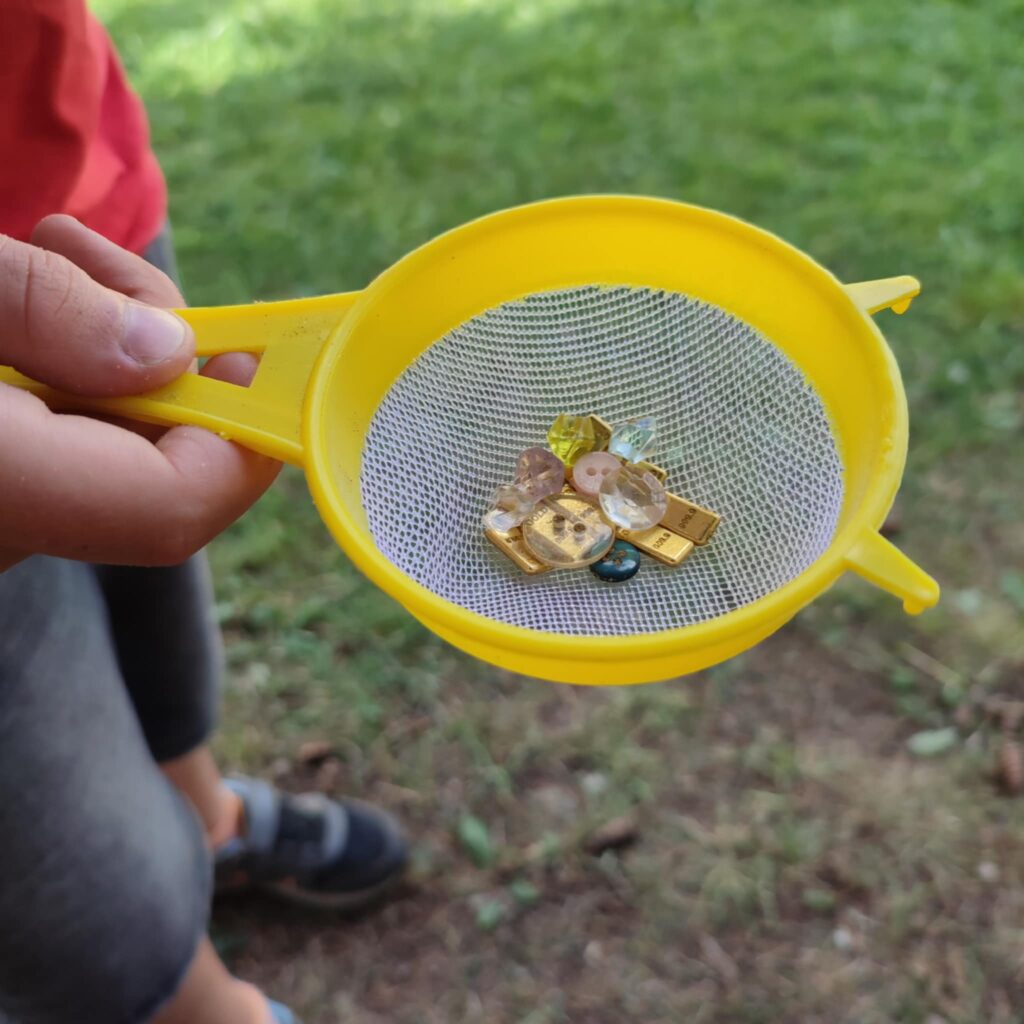 Ze zbytků kůže si jednoduchým způsobem malí kovbojové vyrobili pytlíčky na zlato a drahé kameny, které rýžovali pomocí sítek v pískovišti. ( pravým „zlatem“ se staly kousky kovových plátků z kovodílny a „drahými kameny“ byly staré perleťové i obyčejné knoflíky)