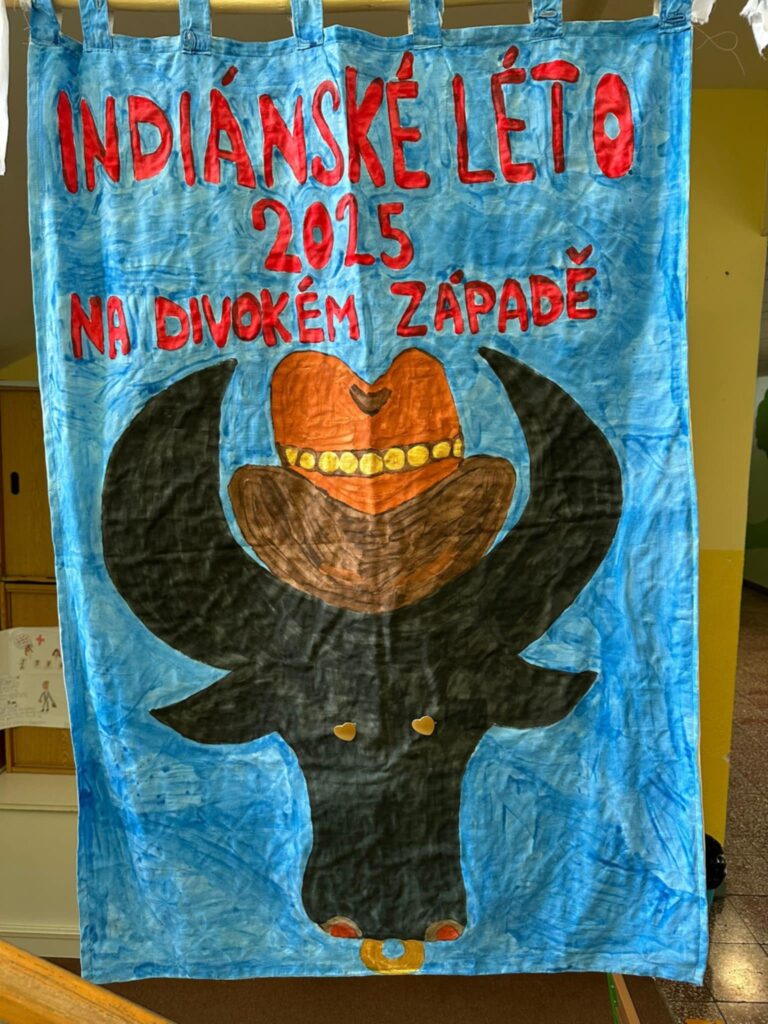 Na konci školního roku jsme ještě stihli vyrobit i táborovou vlajku, abychom pak první den tábora mohli slavnostně zahájit týden kovbojských aktivit.